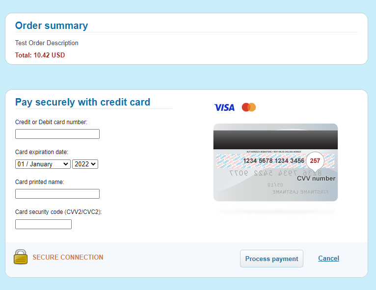 Payers then gets redirected to payment form and submits payment (cardholder) data.