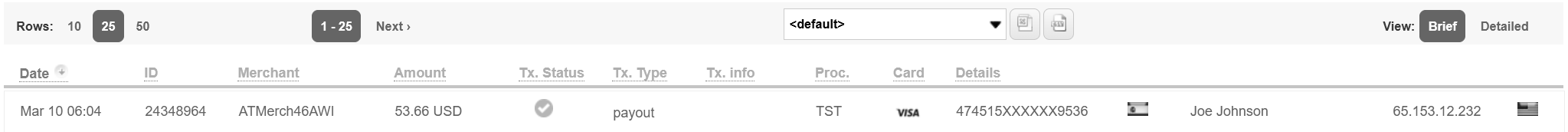 allows you to display all transactions for a specific merchant or multiple merchants |